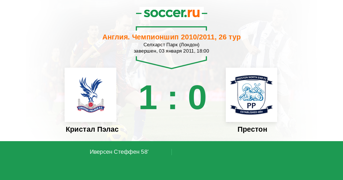 Протокол матча Кристал Пэлас против Престон