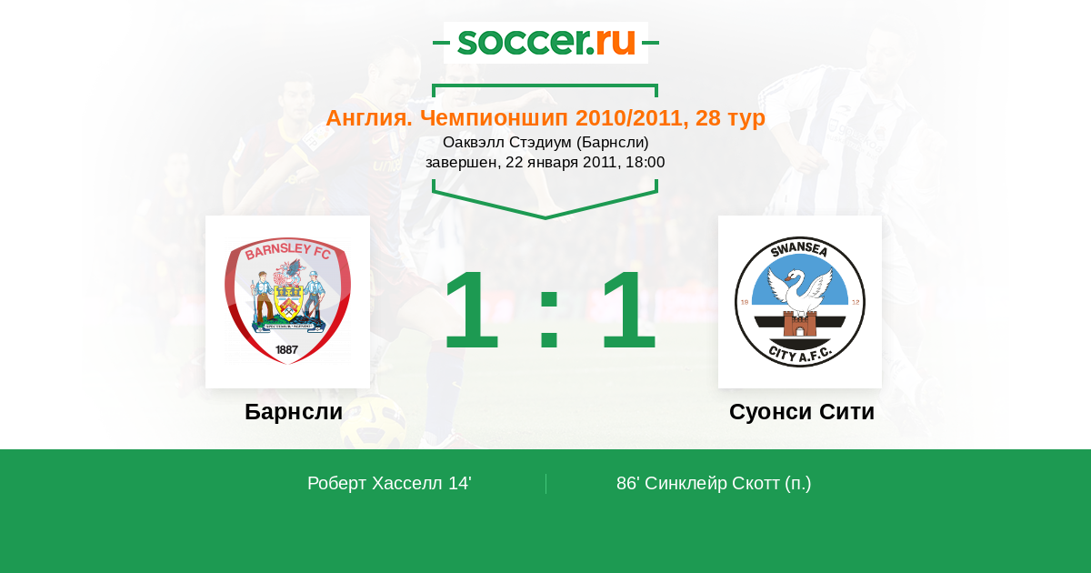 Протокол матча Барнсли против Суонси Сити