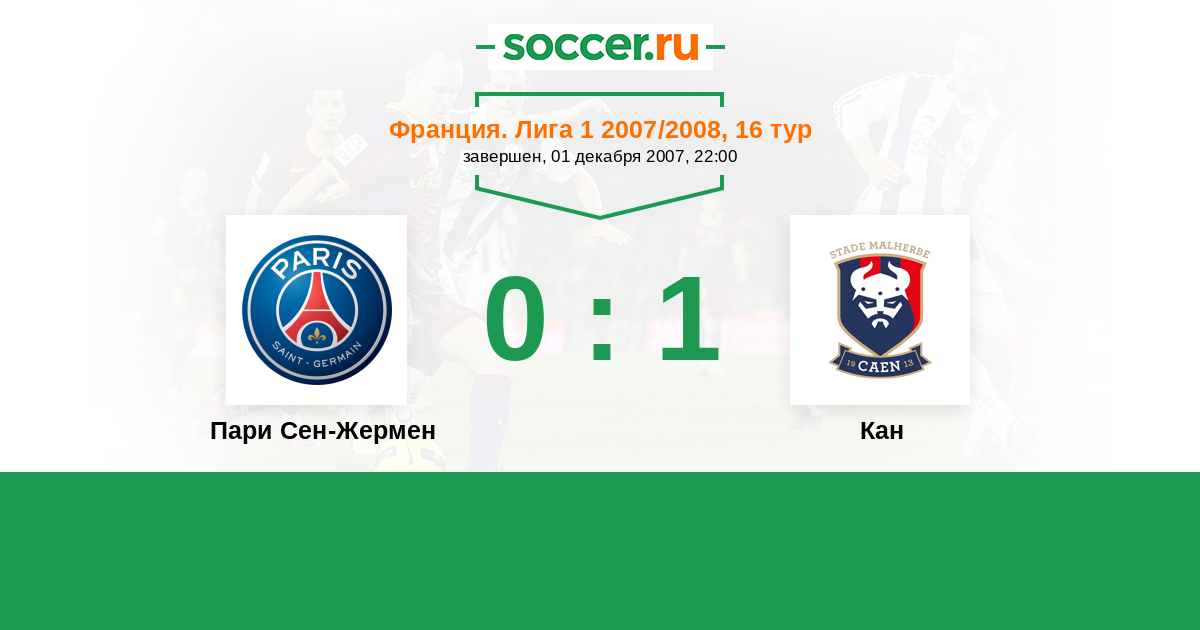 Франция. Лига 1 19.04.2008 Кан Логотип футбольный клуб Кан 3:0 Логотип футбольный клуб Пари Сен-Жермен (Париж) Пари Сен-Жермен