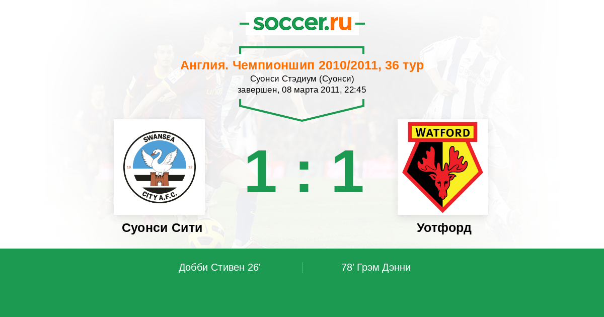 Протокол матча Суонси Сити против Уотфорд