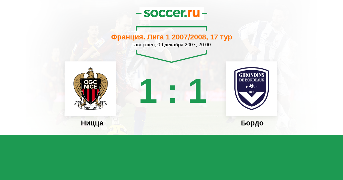 Франция. Лига 1 26.04.2008 Бордо Логотип футбольный клуб Бордо 0:0 Логотип футбольный клуб Ницца Ницца