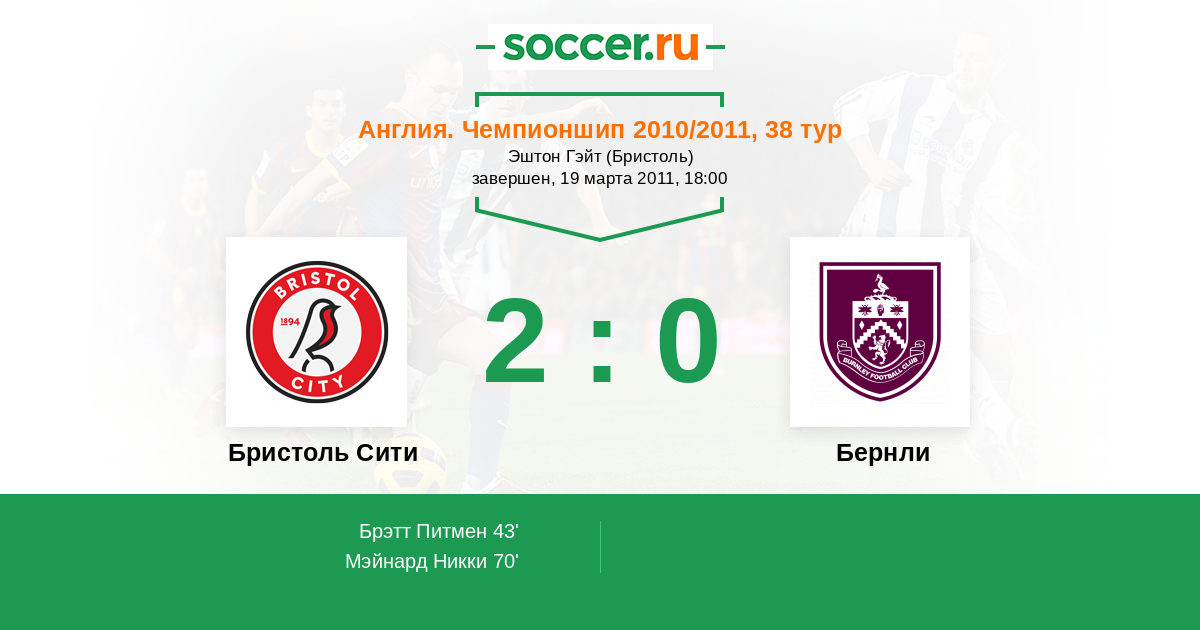 Протокол матча Бристоль Сити против Бернли
