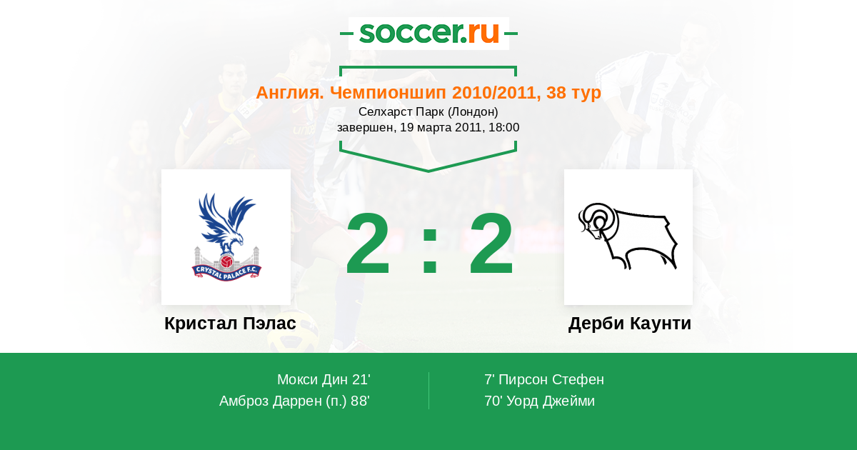 Протокол матча Кристал Пэлас против Дерби Каунти