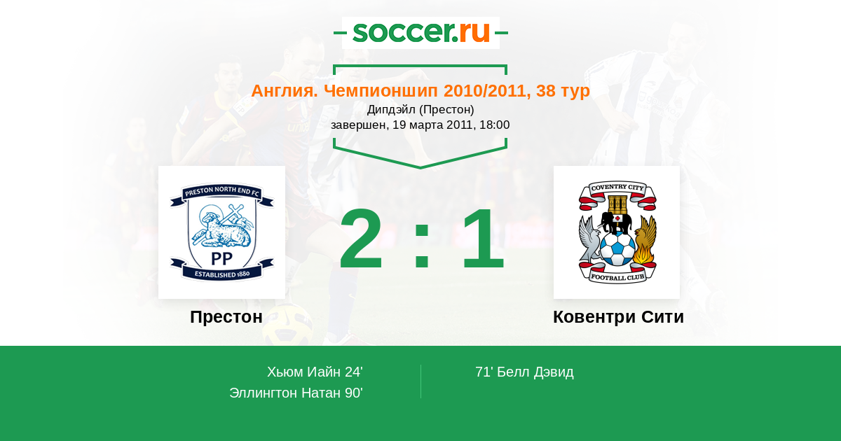 Протокол матча Престон против Ковентри Сити