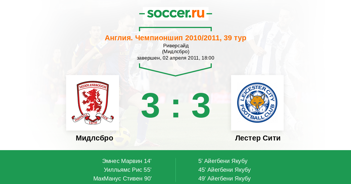 Протокол матча Мидлсбро против Лестер Сити