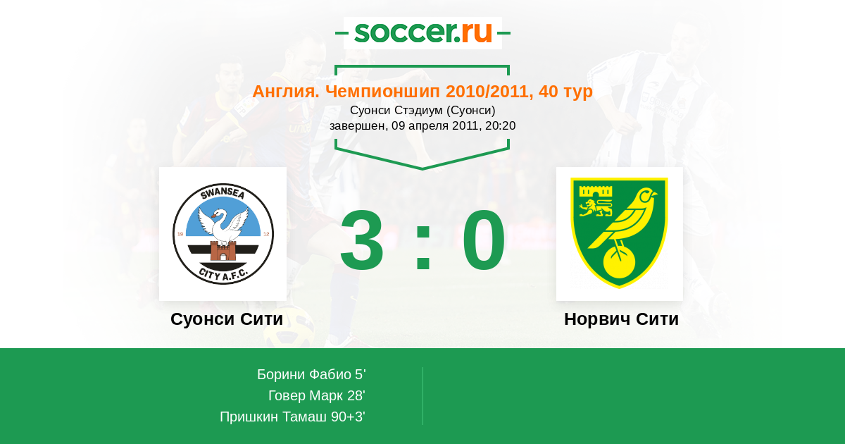 Протокол матча Суонси Сити против Норвич Сити