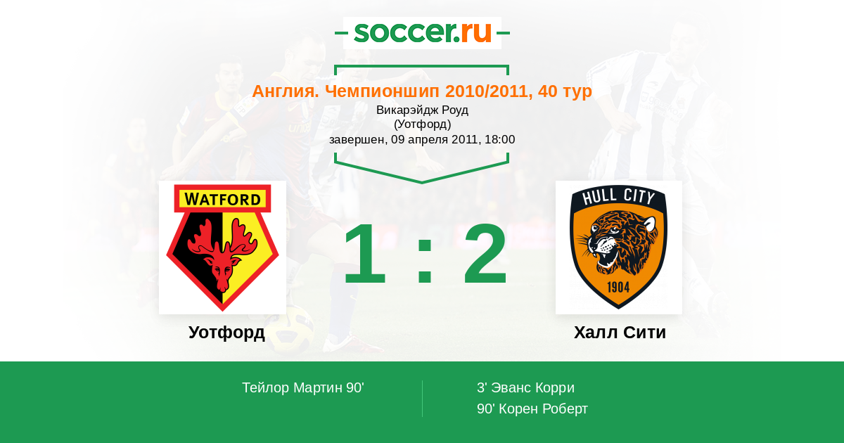 Протокол матча Уотфорд против Халл Сити