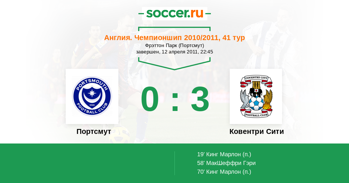 Протокол матча Портсмут против Ковентри Сити