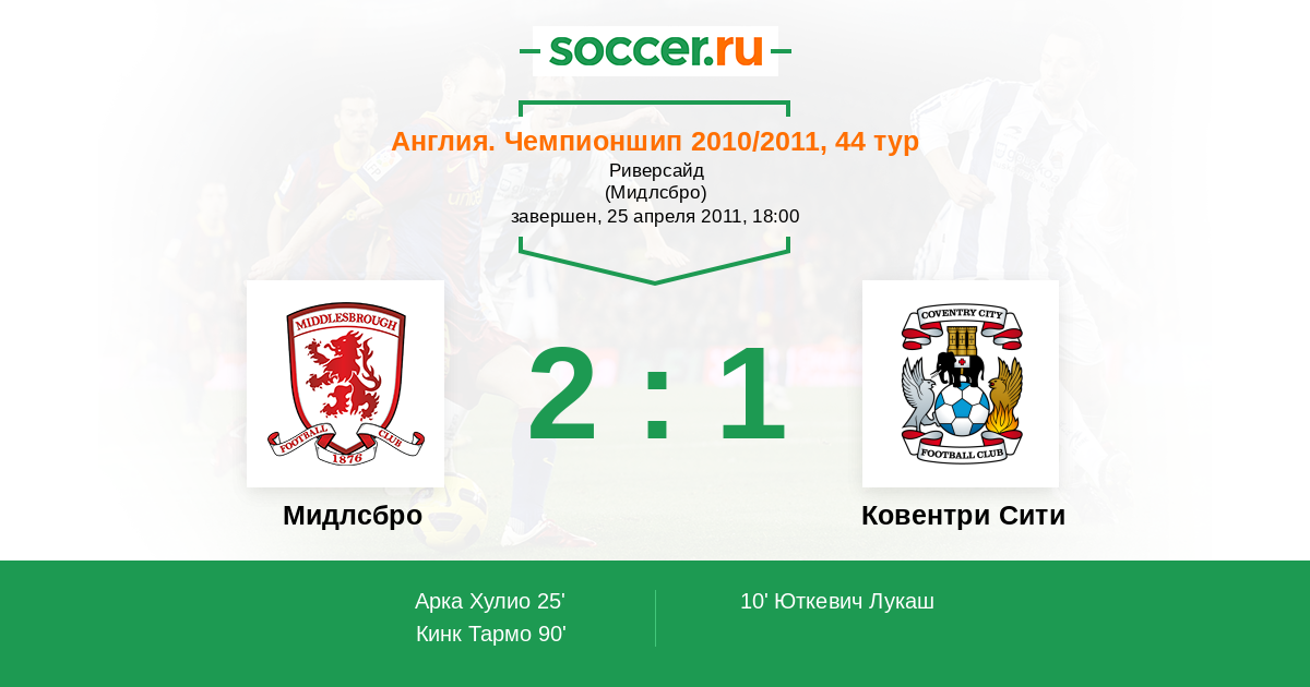 Протокол матча Мидлсбро против Ковентри Сити