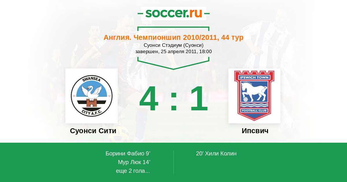 Протокол матча Суонси Сити против Ипсвич