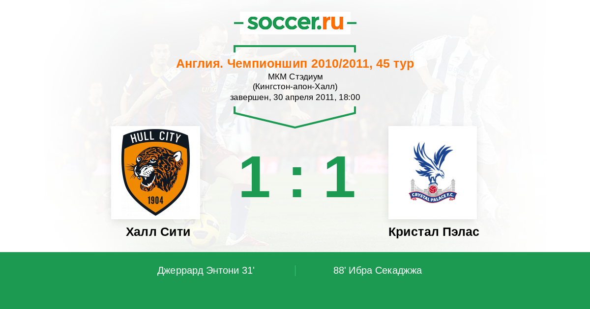 Протокол матча Халл Сити против Кристал Пэлас