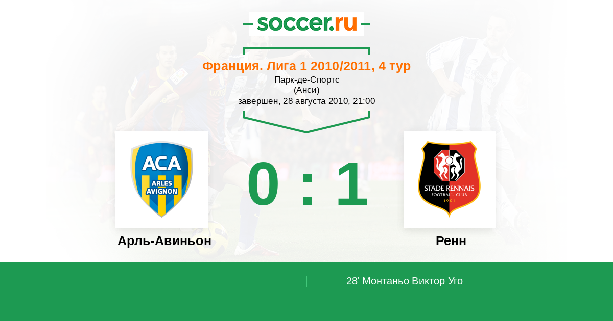 Протокол матча Арль-Авиньон против Ренн