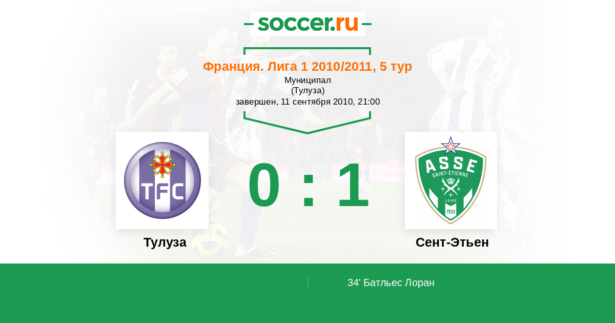 Протокол матча Тулуза против Сент-Этьен