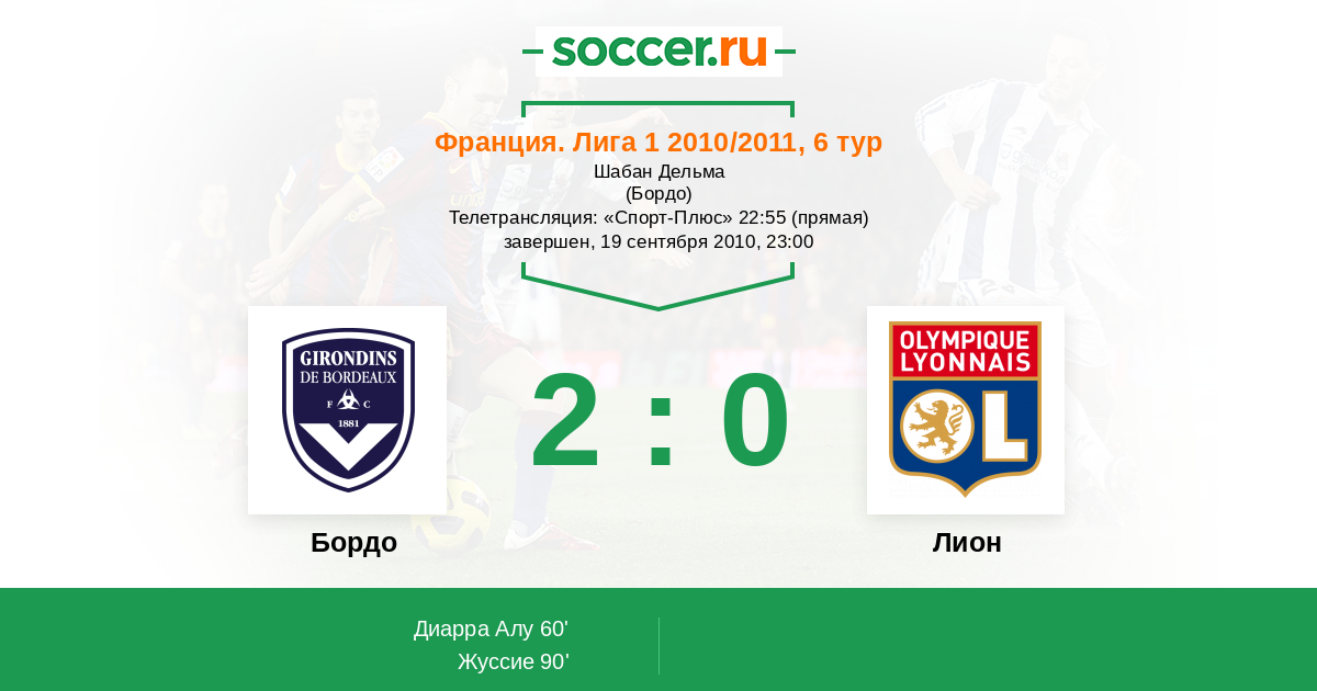 Протокол матча Бордо против Лион