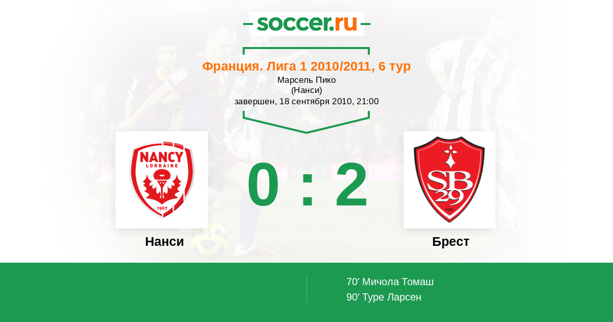 Протокол матча Нанси против Брест