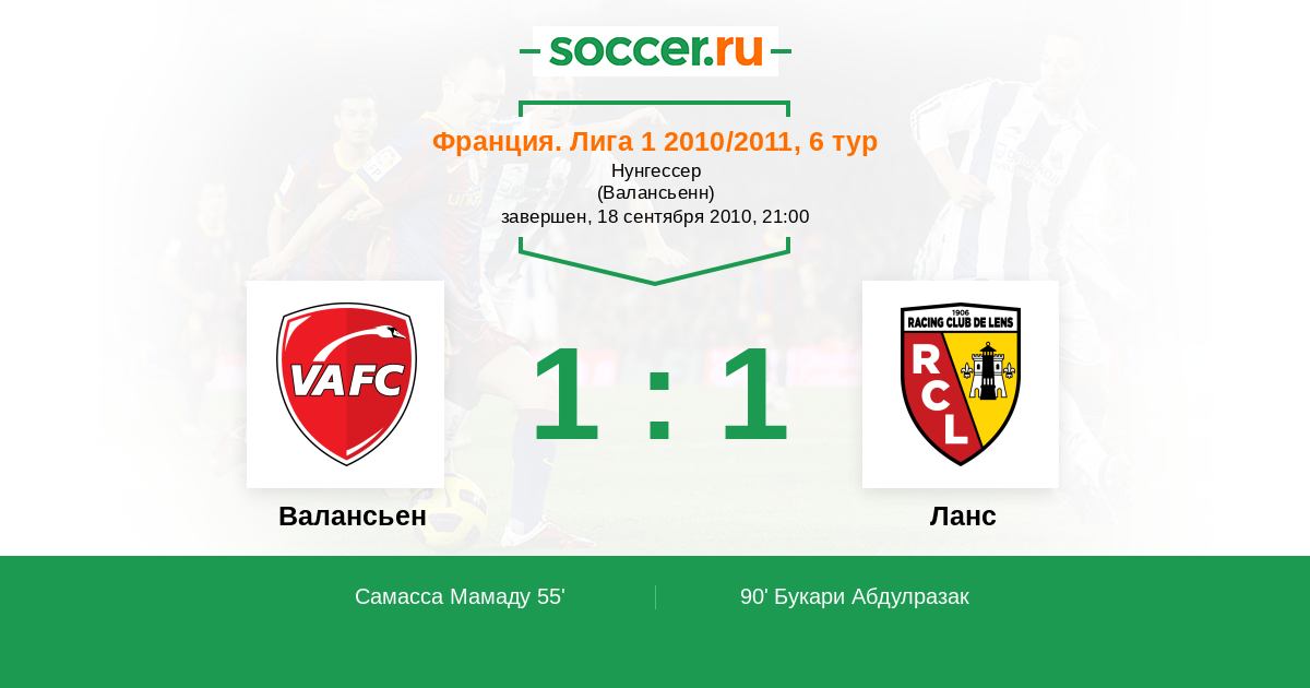 Протокол матча Валансьен против Ланс