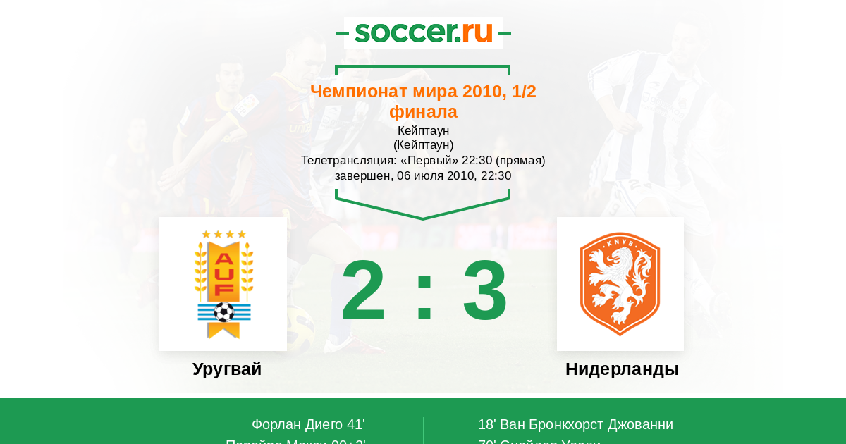 Протокол матча Уругвай против Нидерланды