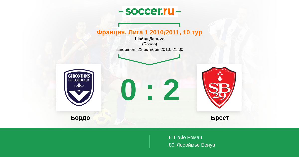 Протокол матча Бордо против Брест