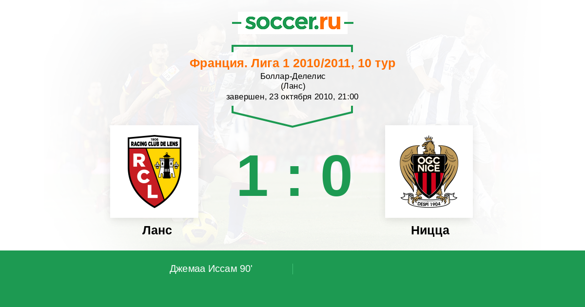 Протокол матча Ланс против Ницца