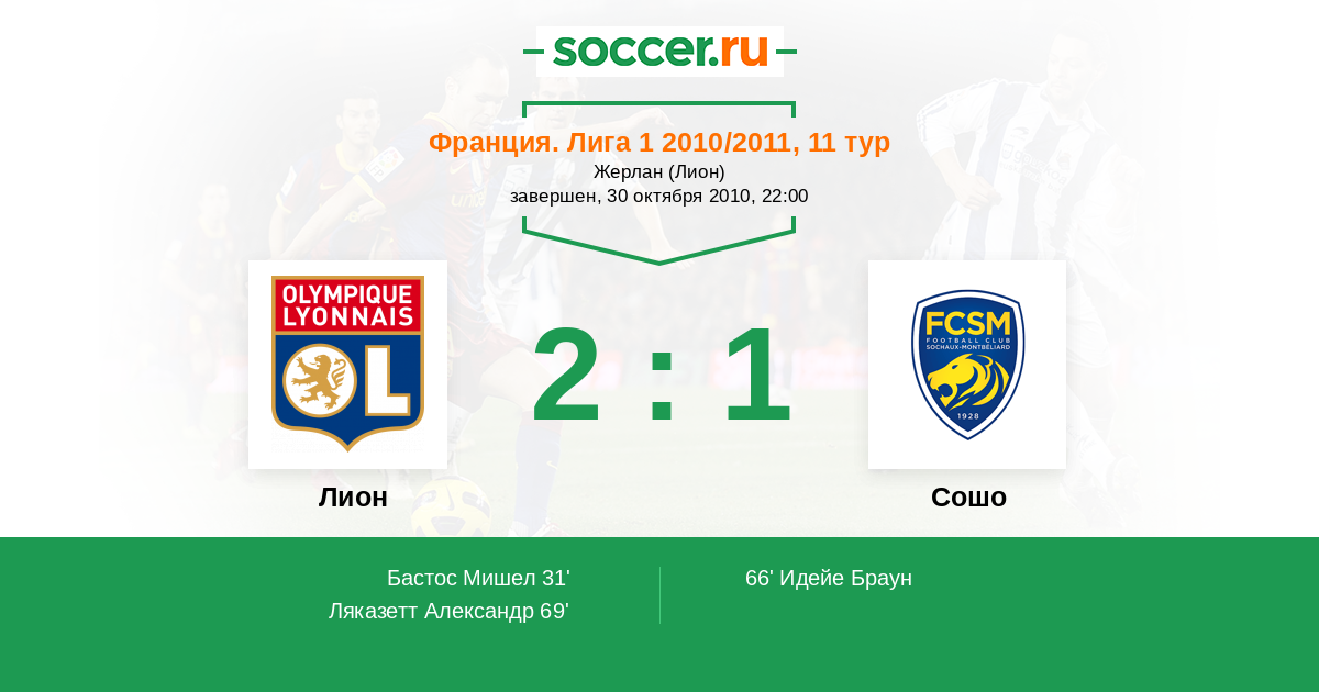 Протокол матча Лион против Сошо