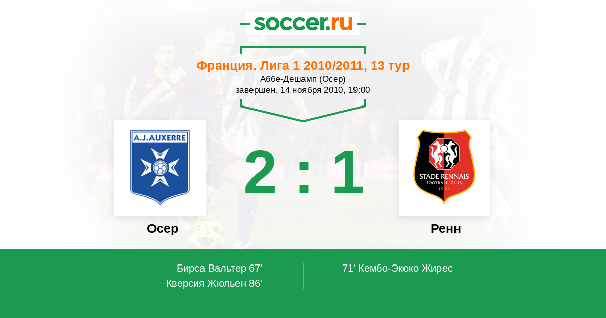 Протокол матча Осер против Ренн