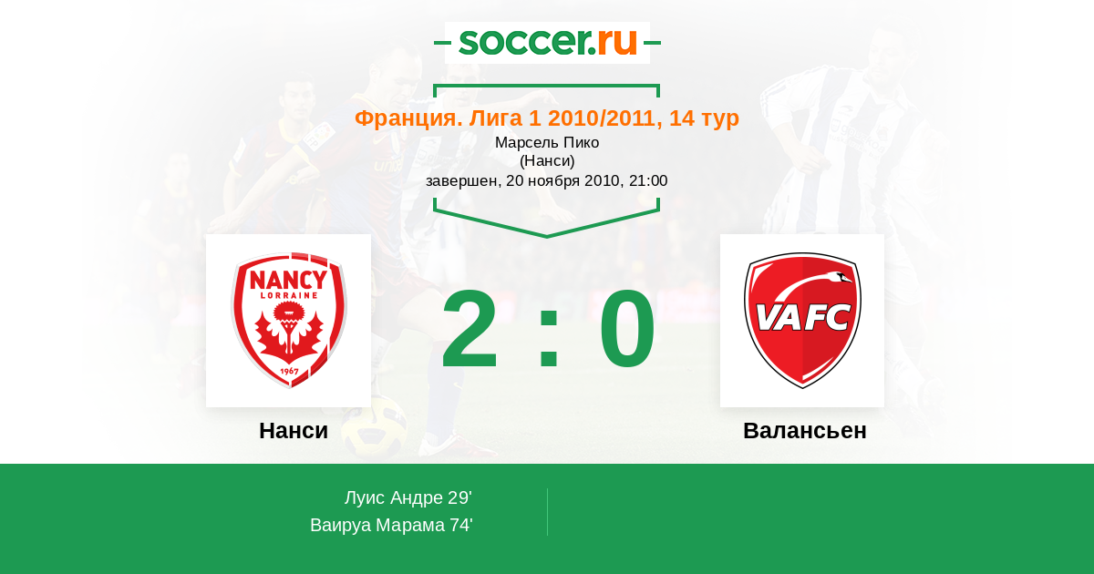 Протокол матча Нанси против Валансьен