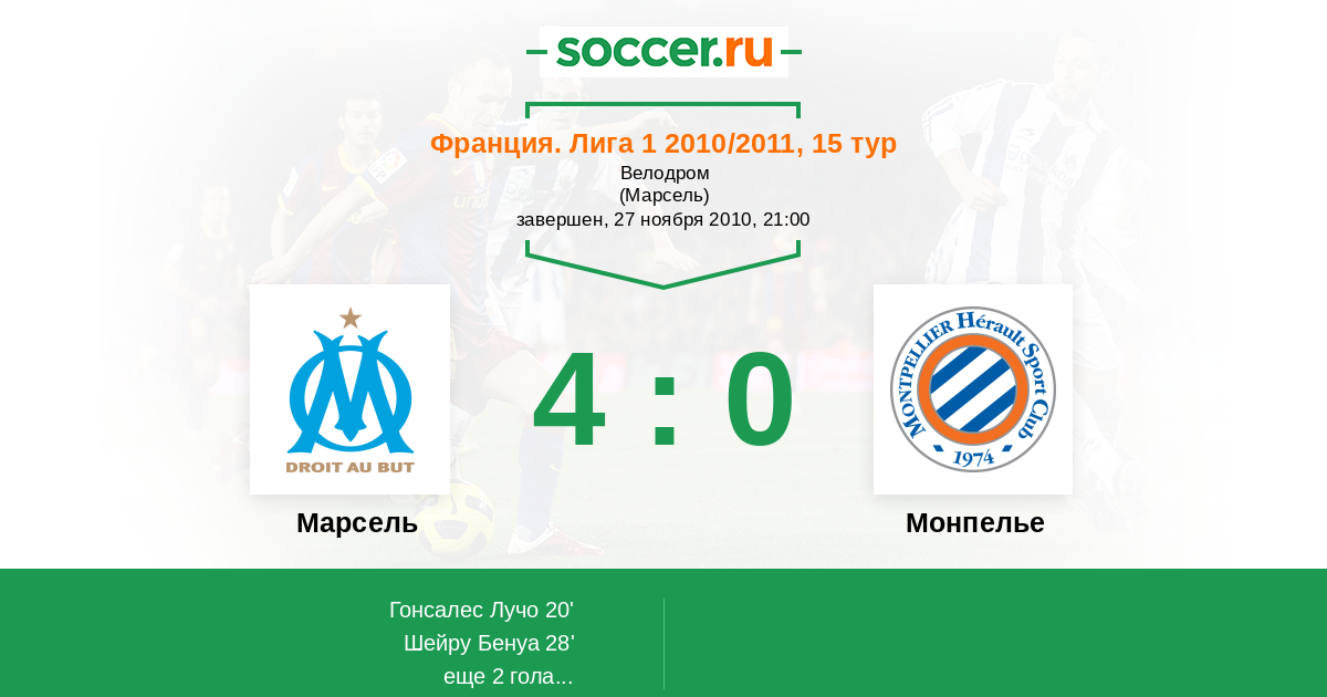 Протокол матча Марсель против Монпелье