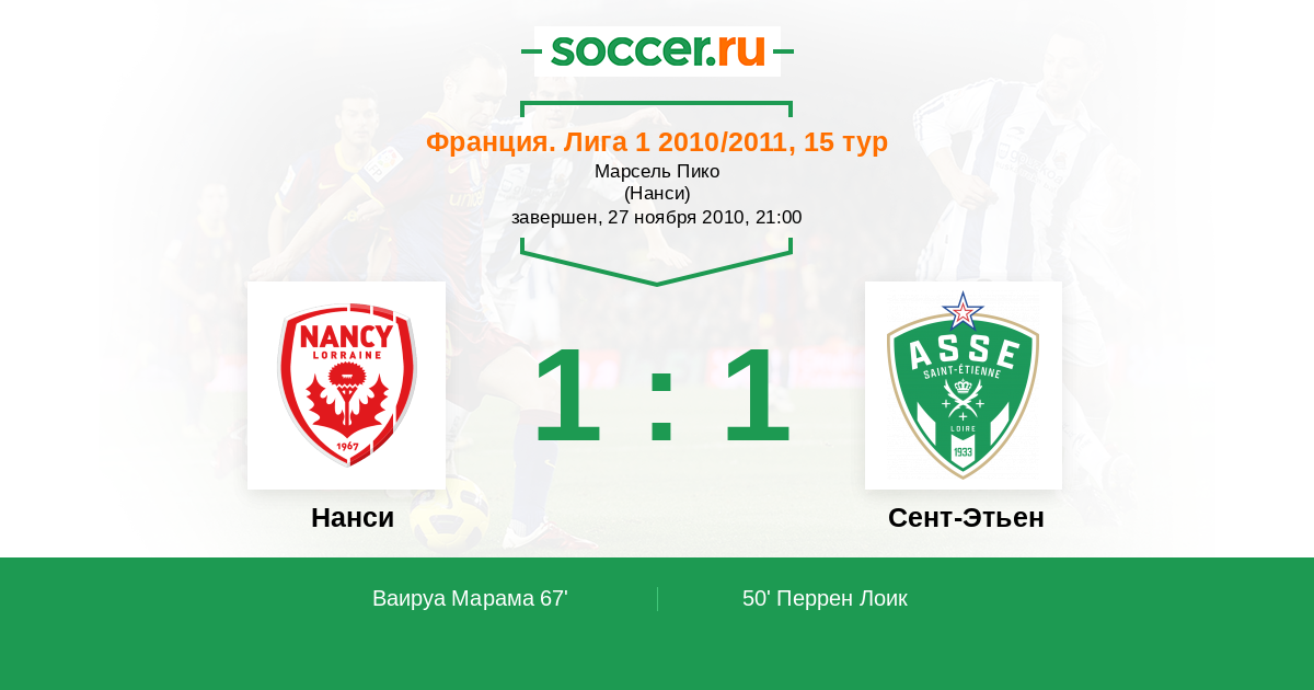 Протокол матча Нанси против Сент-Этьен