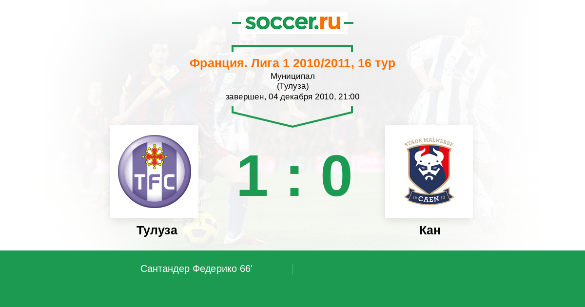 Протокол матча Тулуза против Кан