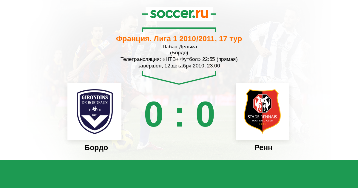 Протокол матча Бордо против Ренн