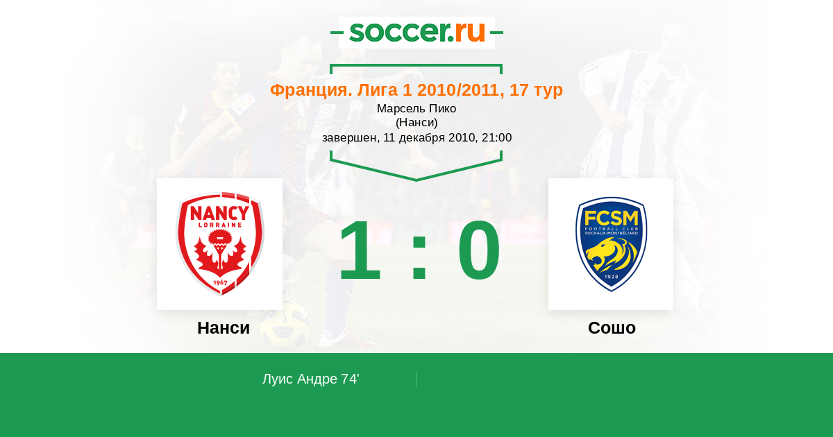 Протокол матча Нанси против Сошо