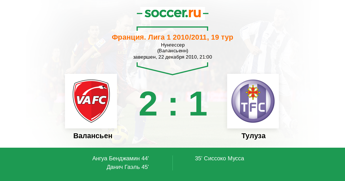 Протокол матча Валансьен против Тулуза
