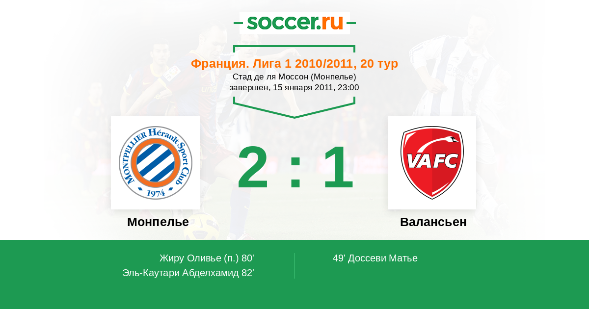 Протокол матча Монпелье против Валансьен