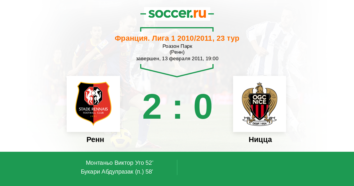 Протокол матча Ренн против Ницца