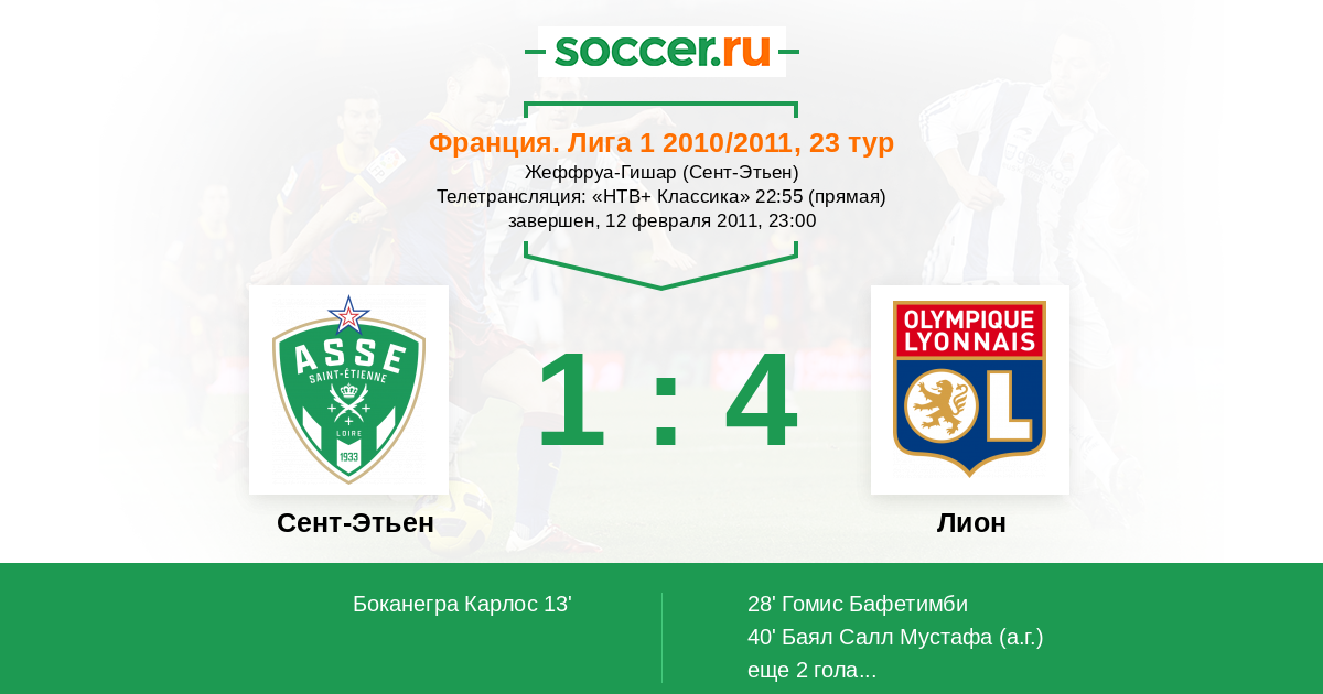Протокол матча Сент-Этьен против Лион