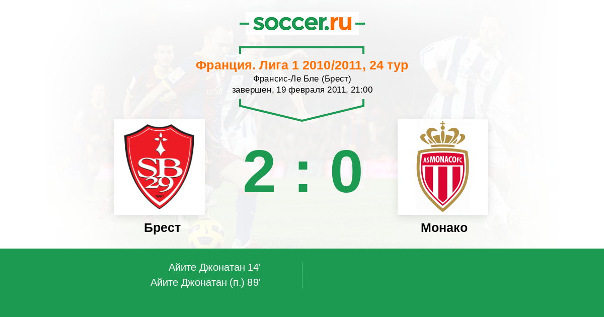 Протокол матча Брест против Монако