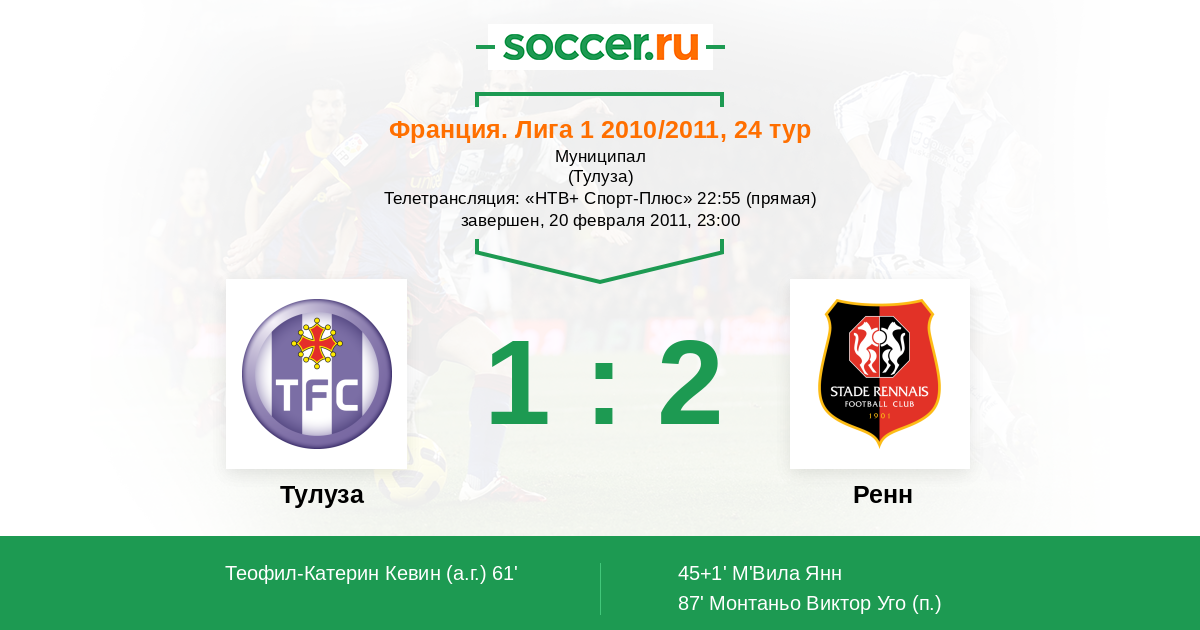 Протокол матча Тулуза против Ренн