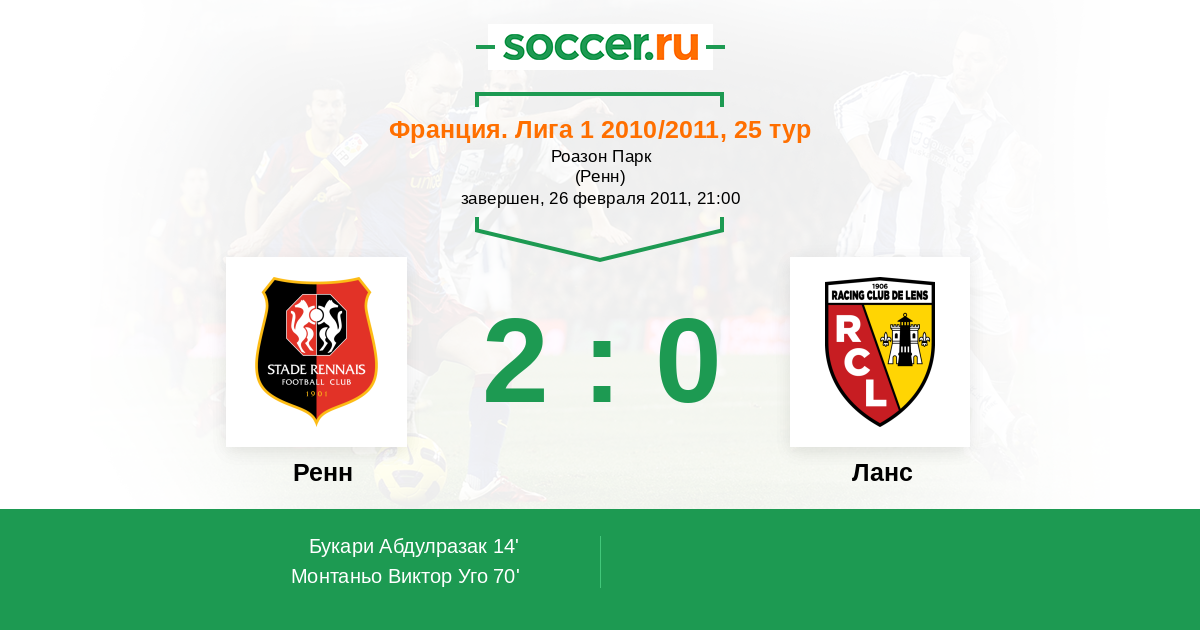 Протокол матча Ренн против Ланс