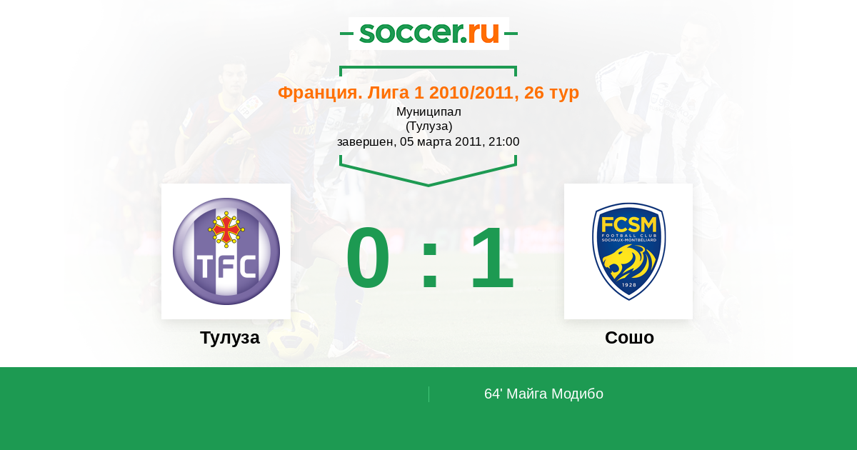 64' (0:1) Майга Модибо (15) (Соже Давид (23))