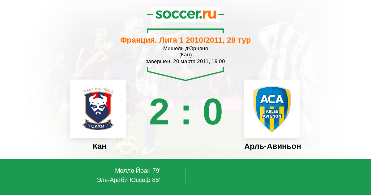 Протокол матча Кан против Арль-Авиньон