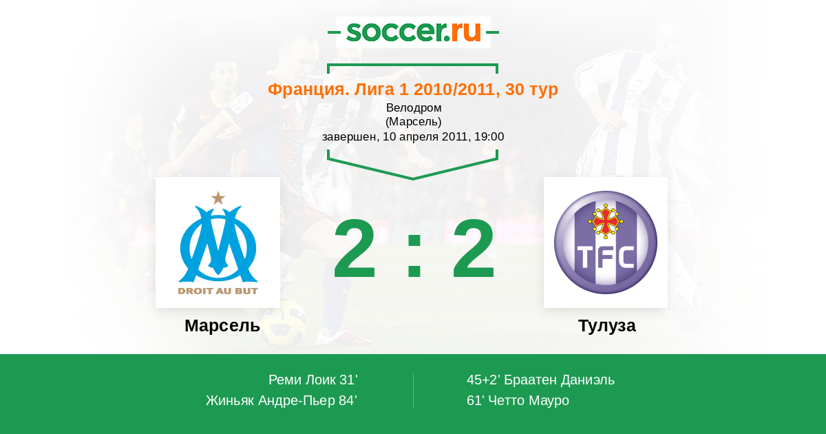 Протокол матча Марсель против Тулуза