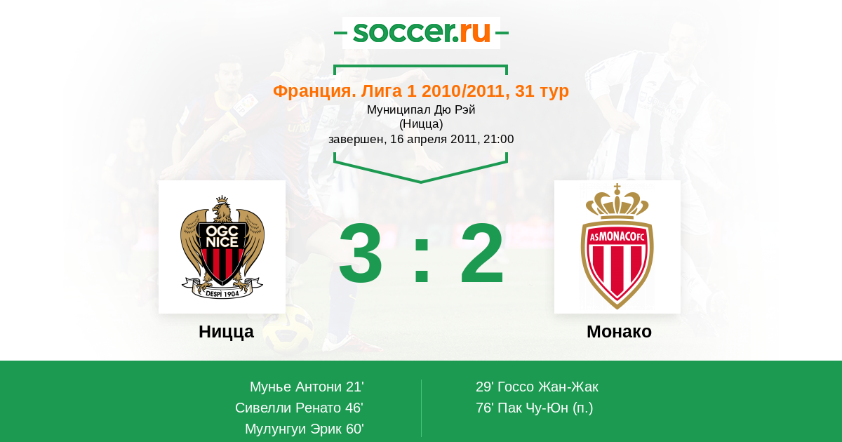 Протокол матча Ницца против Монако