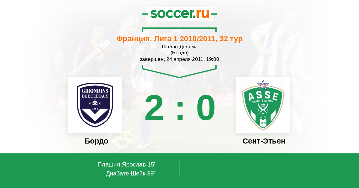 Протокол матча Бордо против Сент-Этьен