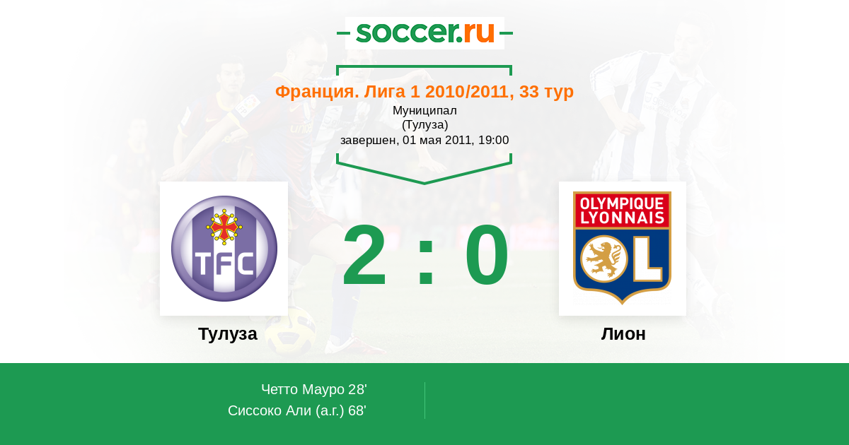 Протокол матча Тулуза против Лион