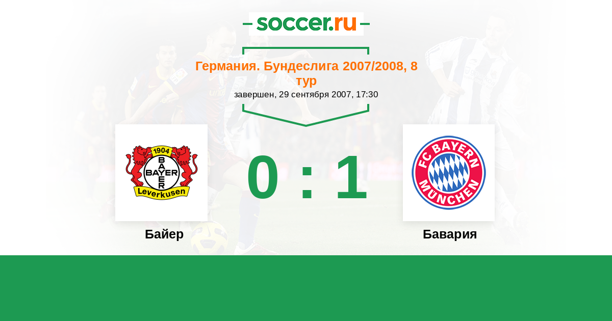 Германия. Бундеслига 15.04.2007 Бавария Логотип футбольный клуб Бавария (Мюнхен) 2:1 Логотип футбольный клуб Байер (Леверкузен) Байер
