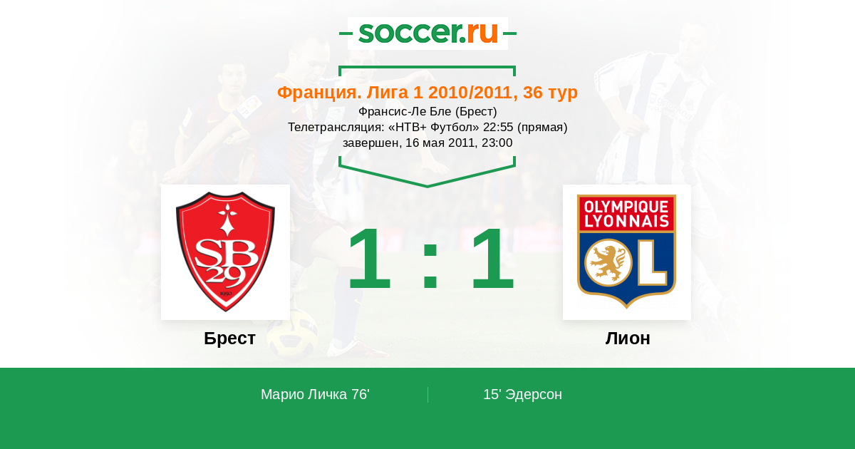 Протокол матча Брест против Лион