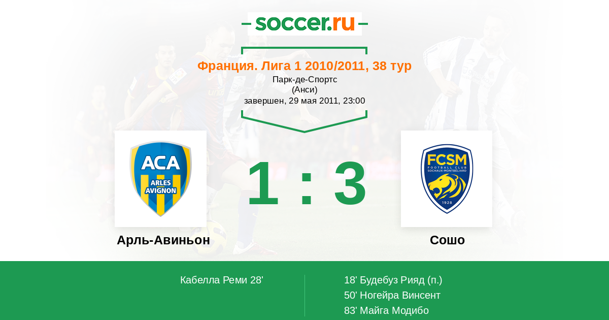 Протокол матча Арль-Авиньон против Сошо
