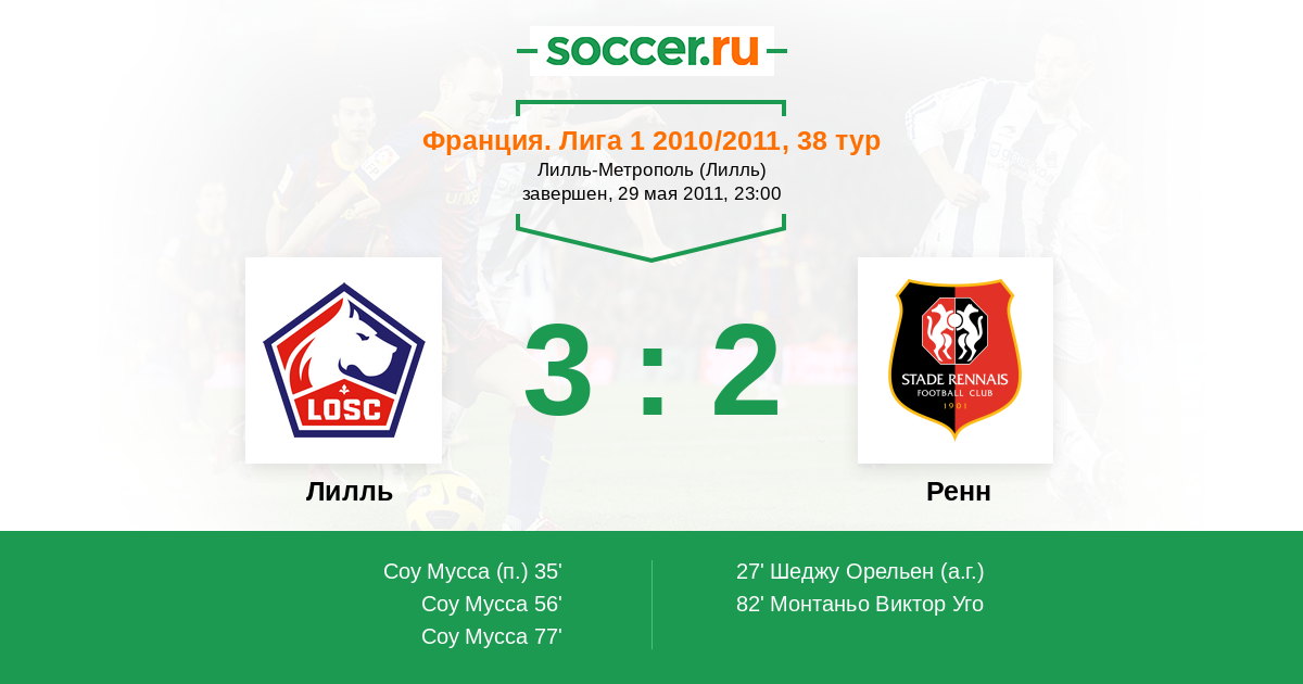 Протокол матча Лилль против Ренн