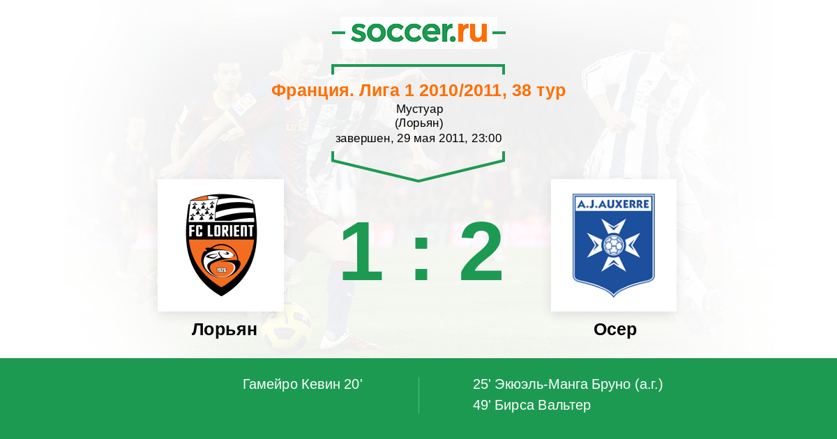 Протокол матча Лорьян против Осер