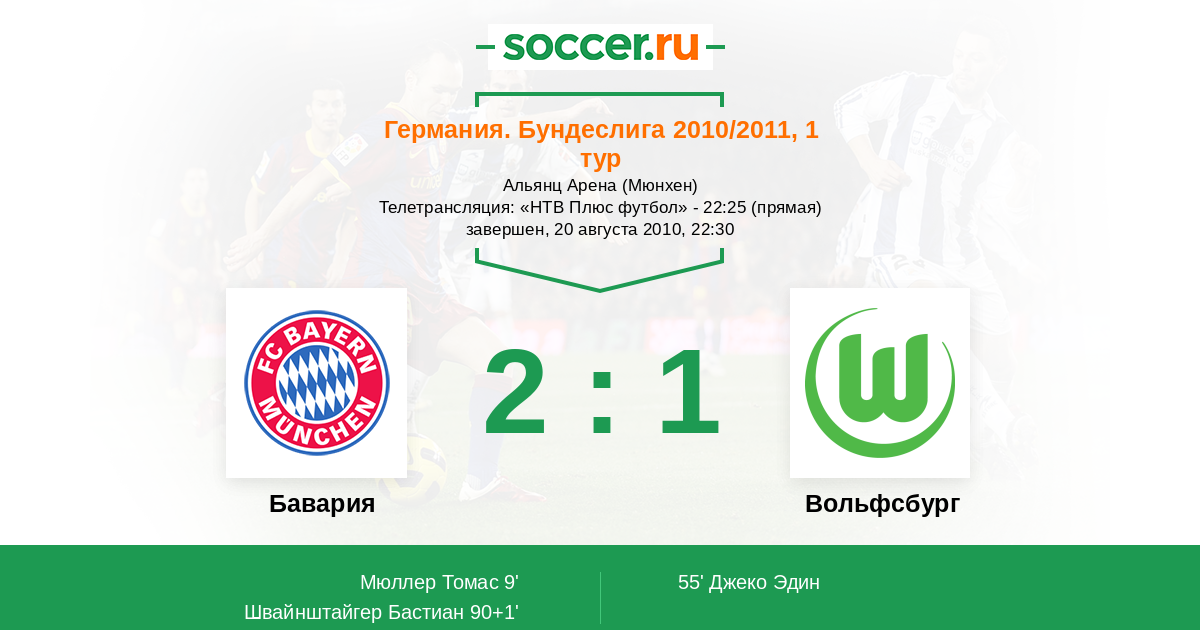 Протокол матча Бавария против Вольфсбург